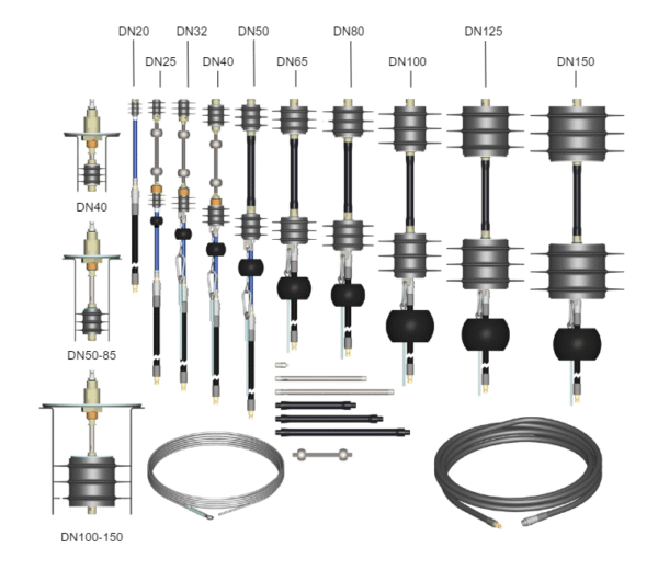 - The kit includes silicone gas plugs, sizes DN20 (3/4″) – DN150 (6″)