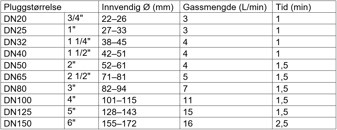 - Settet inneholder silikonpluggene i størrelsene DN20 (3/4″) – DN150 (6″)
