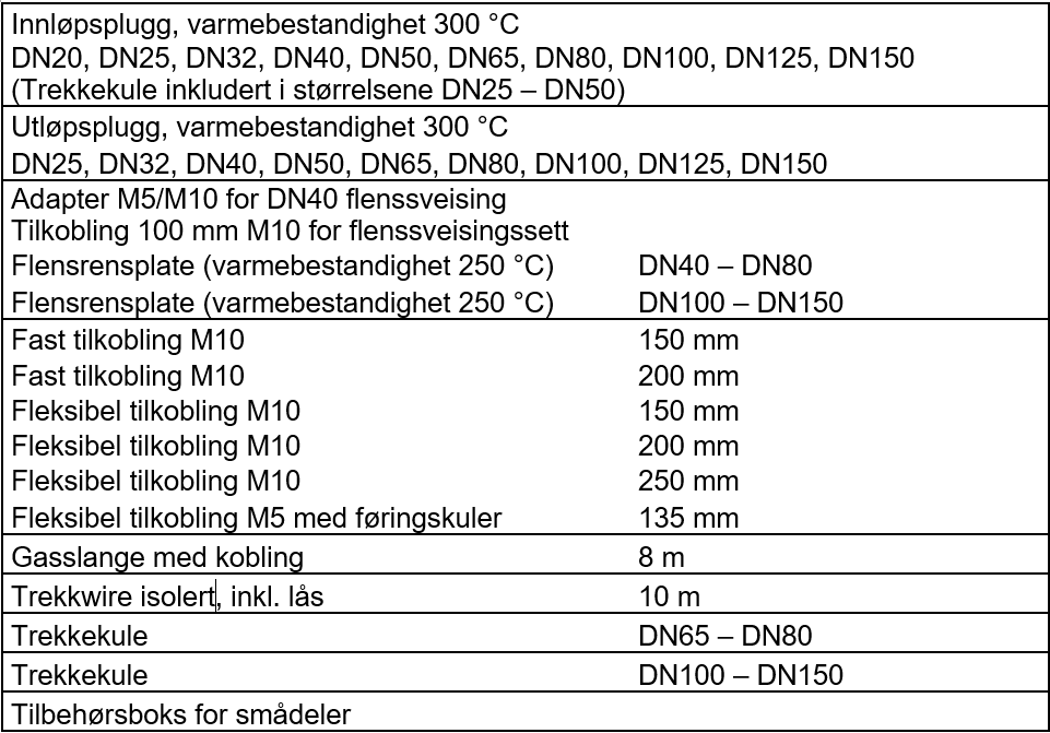 - Settet inneholder silikonplugger, størrelser DN20 (3/4″) – DN150 (6″)