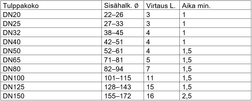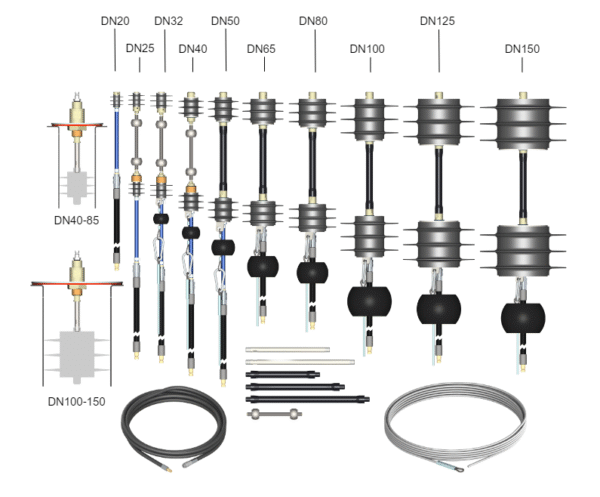 - Sarja sisältää silikoniset kaasutustulpat, koot DN20 – DN150 (3/4“- 6″)