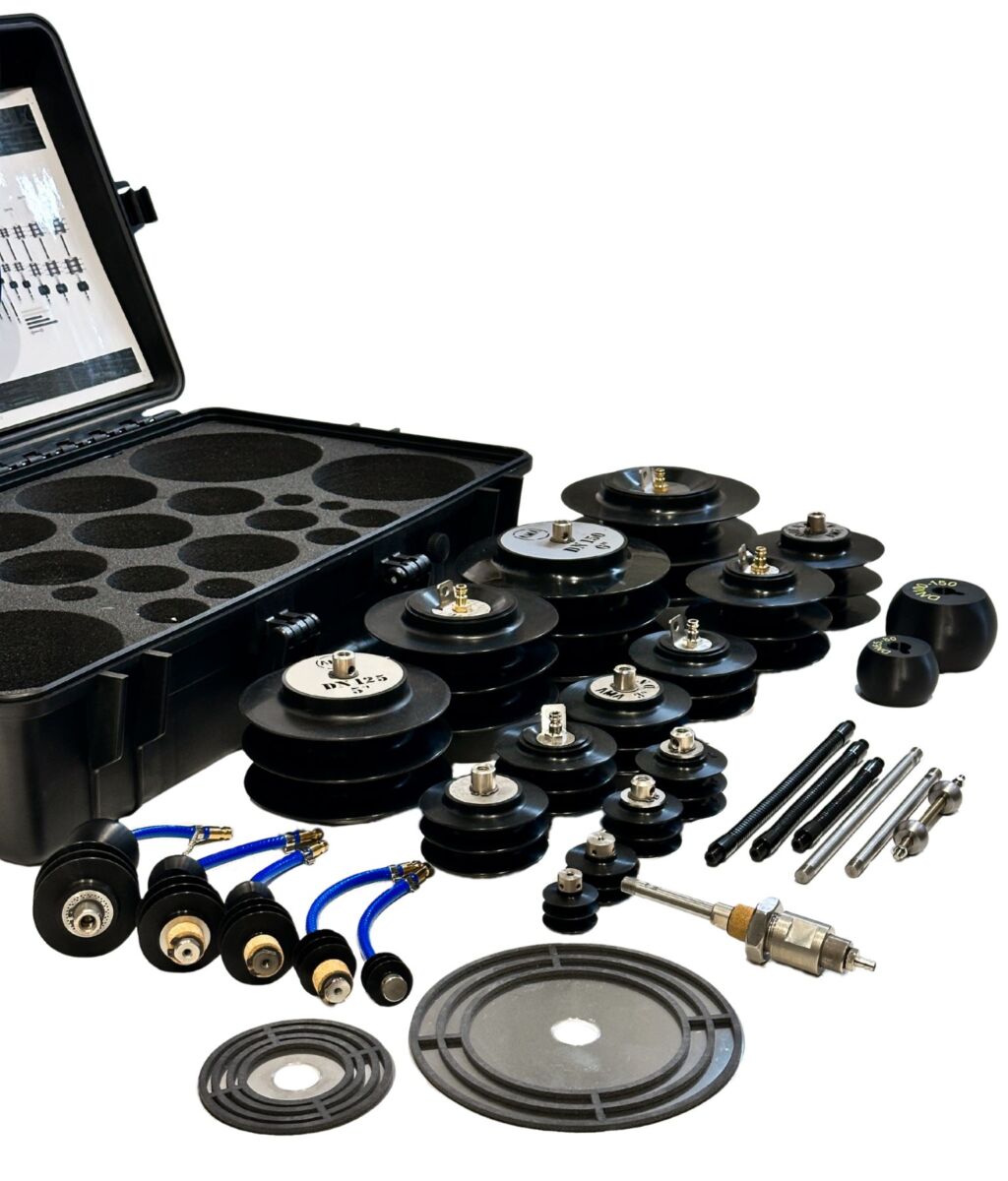 - Sarja sisältää silikoniset kaasutustulpat, koot DN20 – DN150 (3/4“- 6″)
